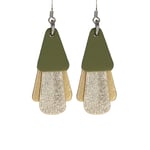 Australian made leather earrings - Jazz. Olive green, gold, matte gold [JOG-904]