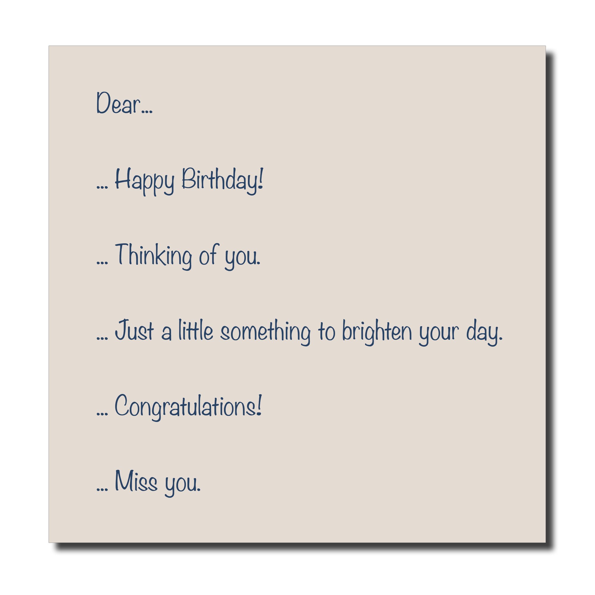 We're happy to add a little gift note for you, whether it be a happy birthday message or sending a little something to brighten their day.